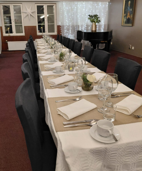 Hartolan Linna tarjoaa ainutlaatuiset puitteet kaikenlaisiin tilaisuuksiin historiallisessa miljöössä, jossa yhdistyvät arvokas tunnelma ja nykyaikainen palvelu. Oli kyseessä häät, syntymäpäivät, yritystilaisuus tai rapujuhlat, luomme teille ikimuistoisen kokemuksen ammattitaitoisella henkilökunnallamme ja paikallisista raaka-aineista valmistetuilla herkuilla. Tervetuloa viettämään juhlahetkiä Hartolan Linnaan, jossa jokainen tilaisuus on ainutlaatuinen elämys.